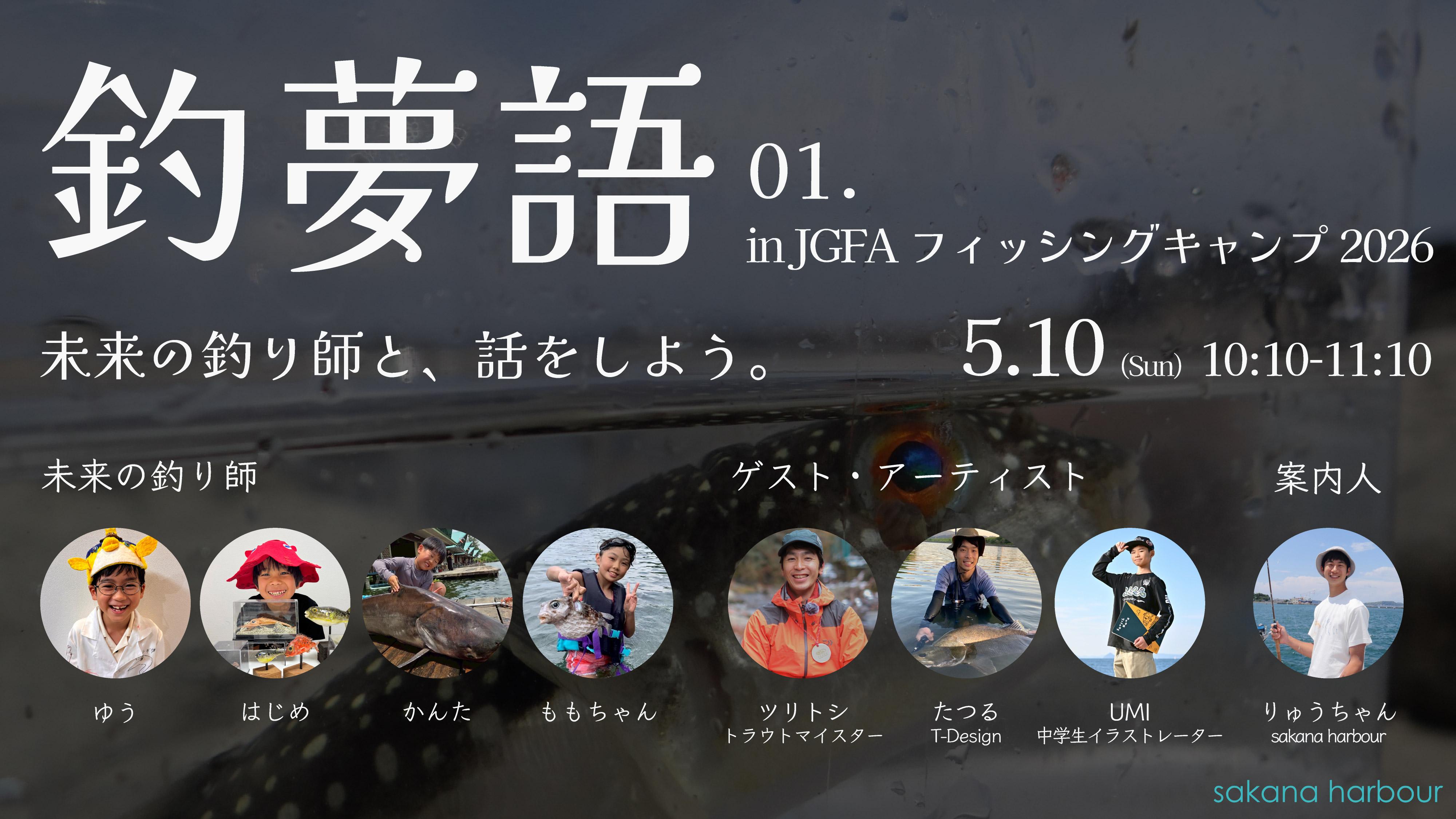 釣夢語(つりゆめがたり)は、釣りに携わる大人たちと子どもたち(「未来の釣り師」)が一緒になって、釣りの思い出や夢を語り合うトークライブです。